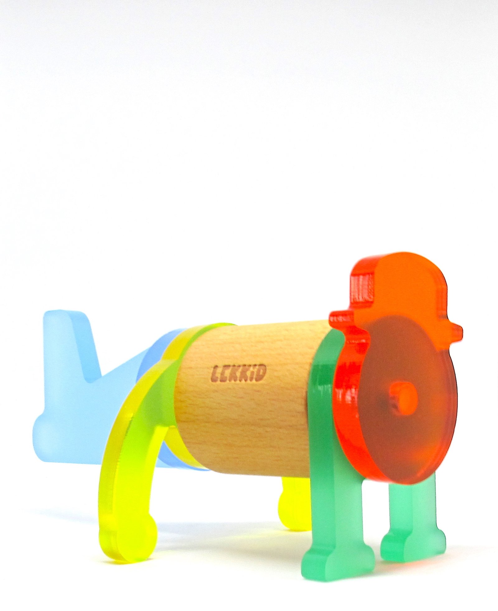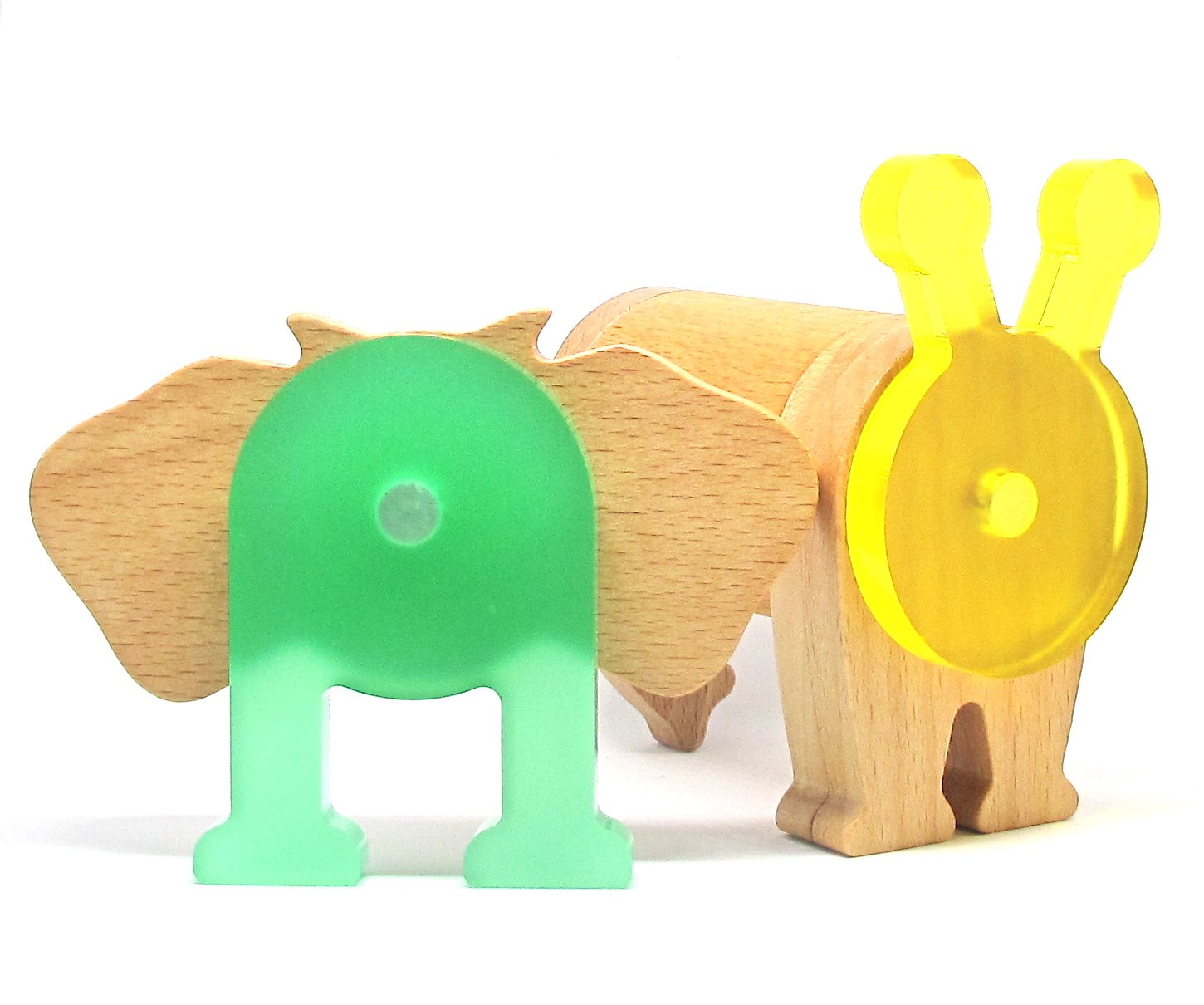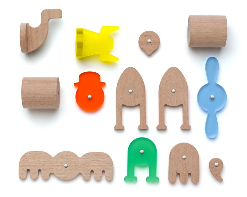 The magnetic beech wood building blocks Imaginary Fauna by Lekkid for constructing many different animals and characters.