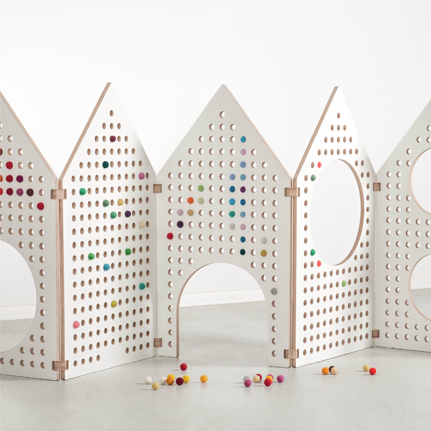 Tai modulinė sensorinė žaidimų širmelė, skirta erdvės atskyrimui, vaidmenų žaidimams ir smulkiosios motorikos lavinimui.